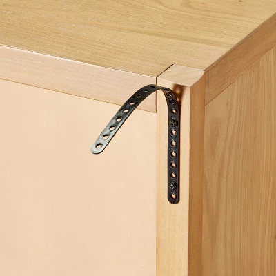 Make a practical addition to your home decor with the Grooved Wood with Glass 2-Door Storage Cabinet from Hearth & Hand™ with Magnolia. Made with wood and designed with clean lines, this natural-shade storage cabinet features a grooved interior for textured charm. Plus, it closes with glass doors to make it easy to see what’s inside. You can use this wooden storage cabinet in your living room, dining room or any other spot to display your storage baskets, photos, books and other items.